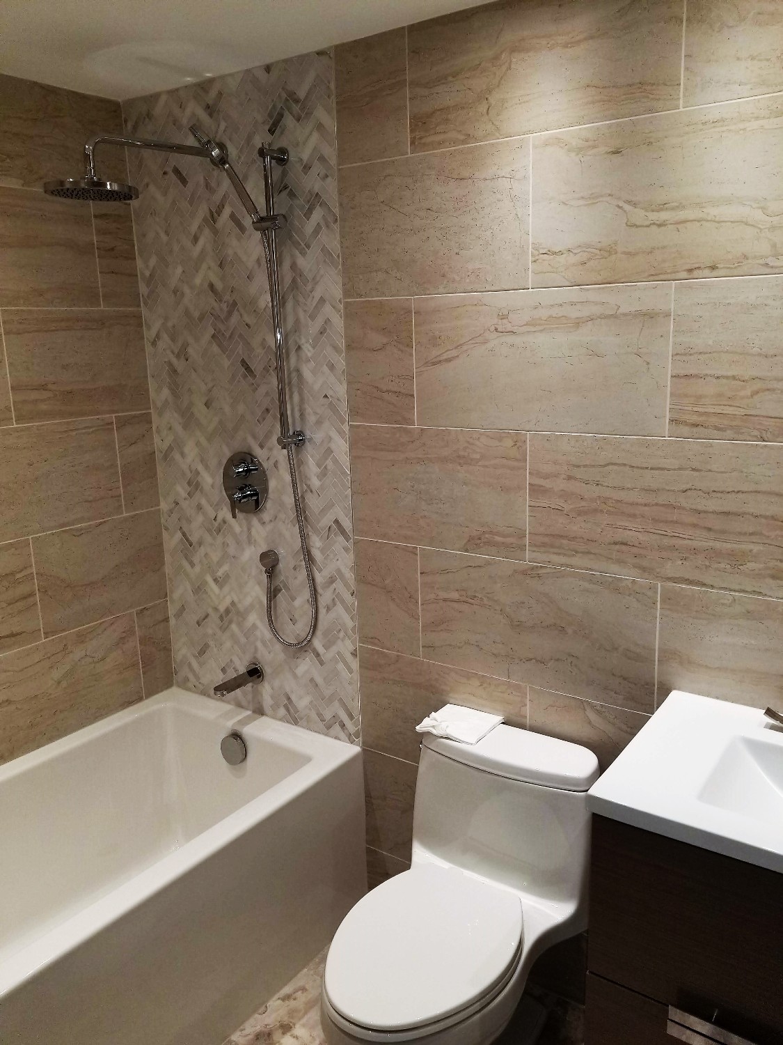 Work on the design of small bathrooms requires more forethoughtful and responsible treatment in its performance, and that is something that our company vouches for. In this very project, we used thermal insulation material with waterproofing assemblies to reconstruct the walls. The materials made of pressed hard foam panel help to create the bathtub, shower surrounds and other bathroom structures that will not be damaged by humidity. For the visual expansion of the space our designers use materials of mainly light colors.
